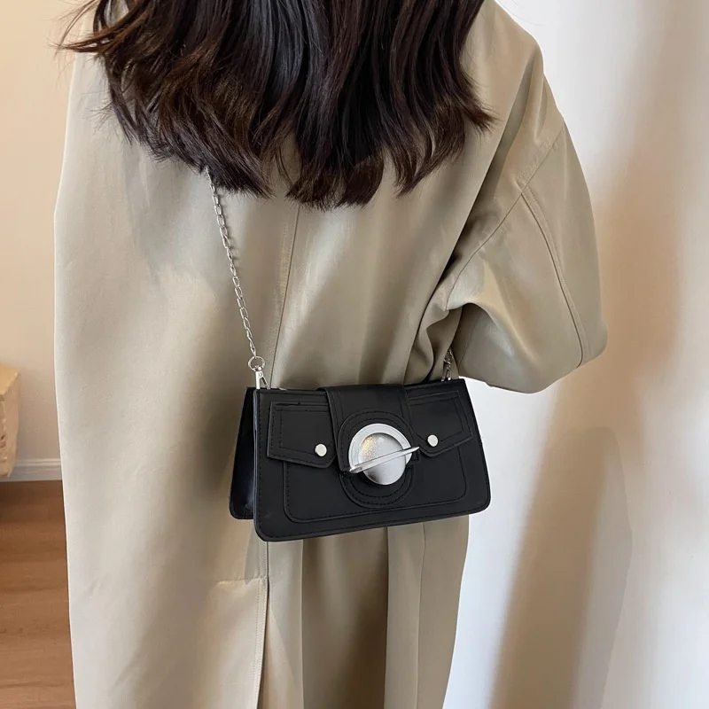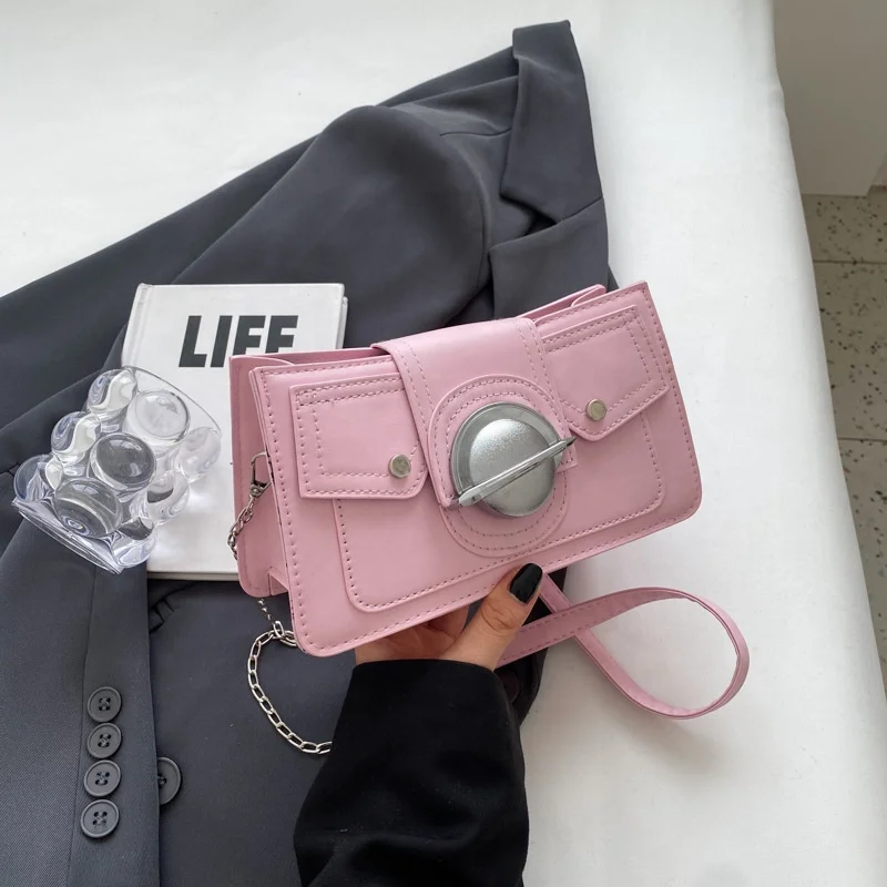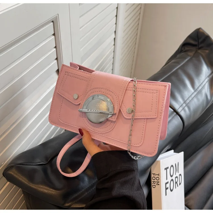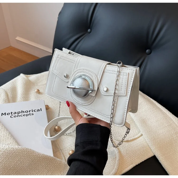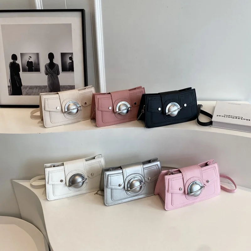 Wholesale Mini PU Leather Square Handbags Rivets Pure Color Underarm Crossbody Bags Planet Lock Simple Shoulder Bags for Women