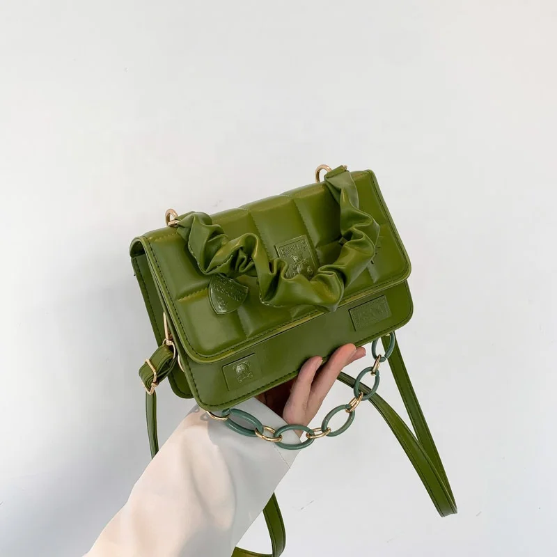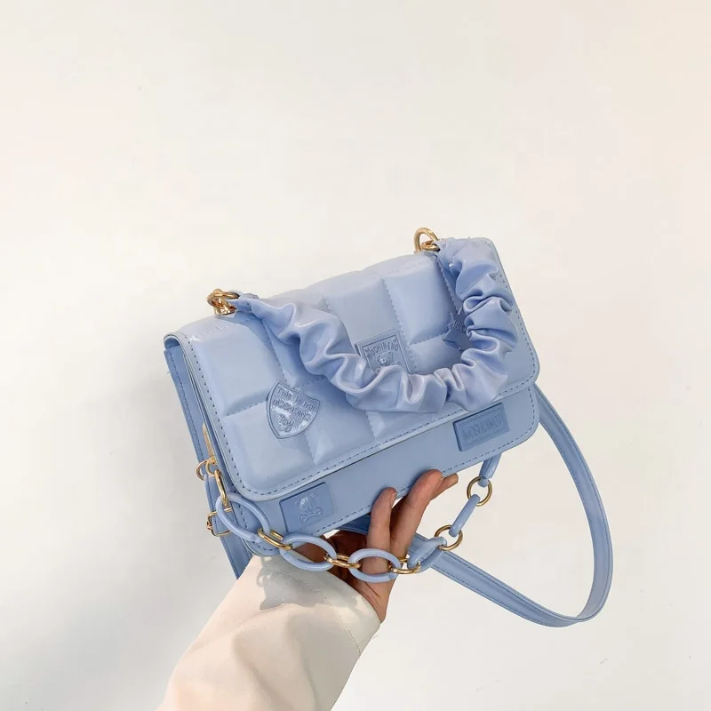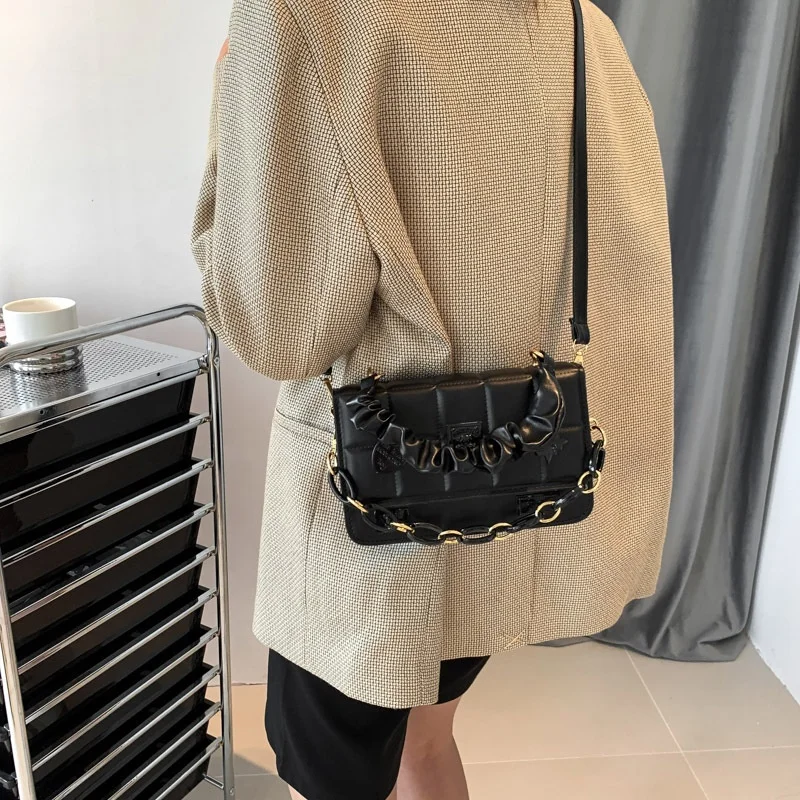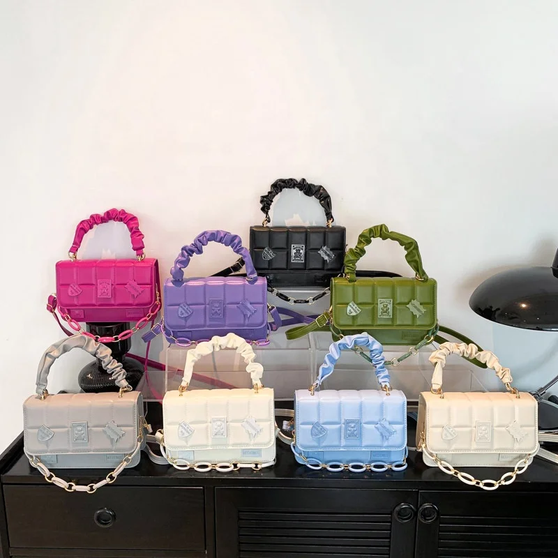 Wholesale PU Leather Simple Handbags Pure Color Underarm Crossbody Bags Wrinkle Square Indentation Luxury Shoulder Bag for Women