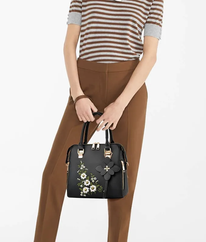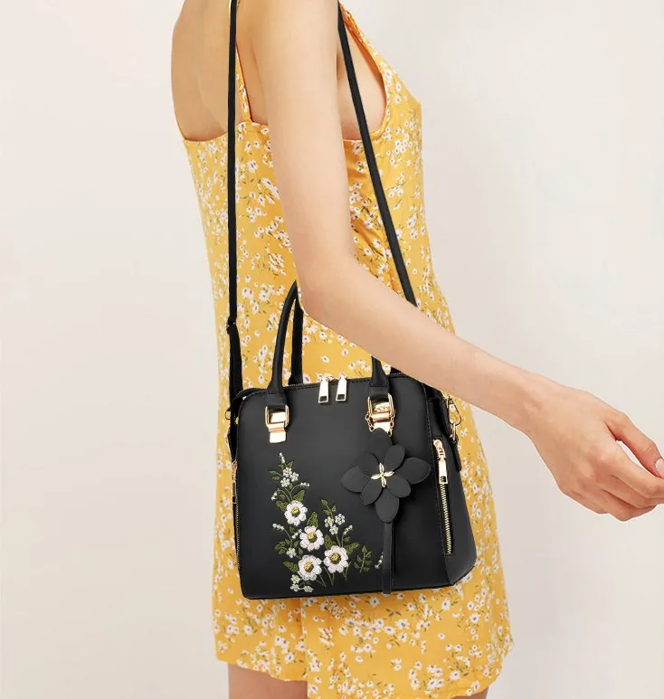 New Fashionable Embroidered Handbag Custom Woman Simple PU Leather Crossbody Bag Pure Color One-shoulder Bag With Zipper