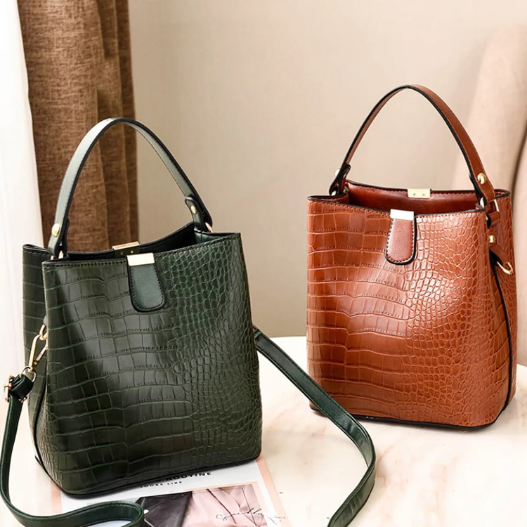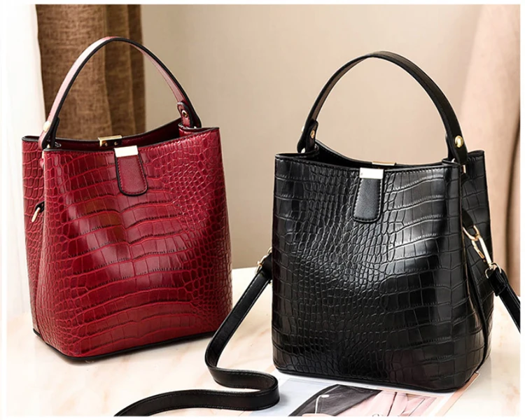 New High Quality Sac a Main Fashion Handbags Crocodile Pattern Bucket Bag PU Leather Crossbody Bag for Women Luxury