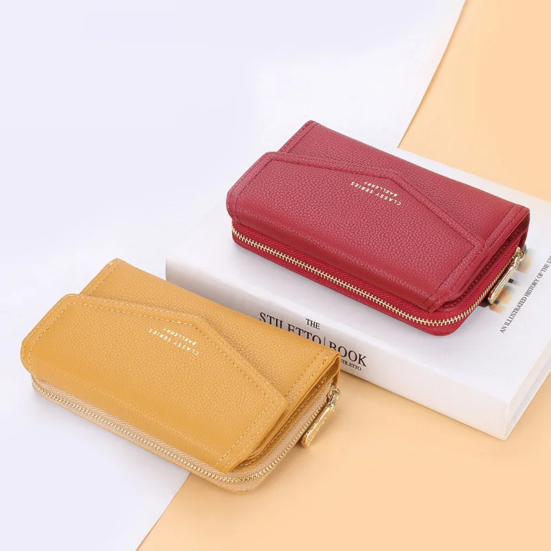Women's Mini Slim Leather Wallet Fashion Coin Purse with Zipper Closure Long Credit Card Case and Card Holder Wholesale