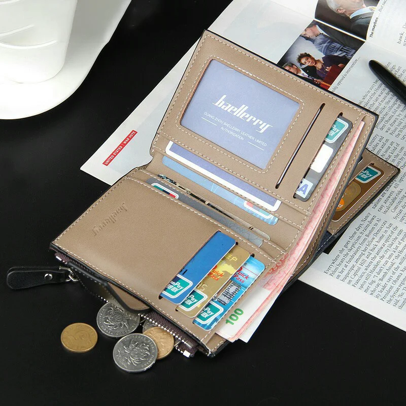 Luxury Men's Wallet Zipper Coin Pocket Card Holder Fashionable Man Purses Clutch Engraved Name Long Short Versions Available