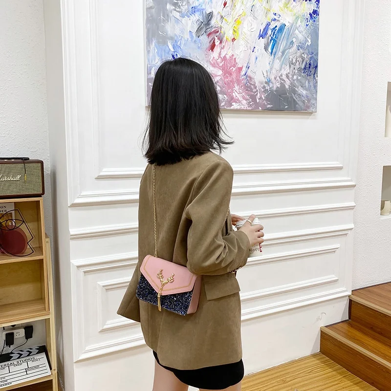 Luxury Sequins Leather Square Messenger Bag Shoulder Cross Body Handbags Women's Bags and Purses for Women Luxury