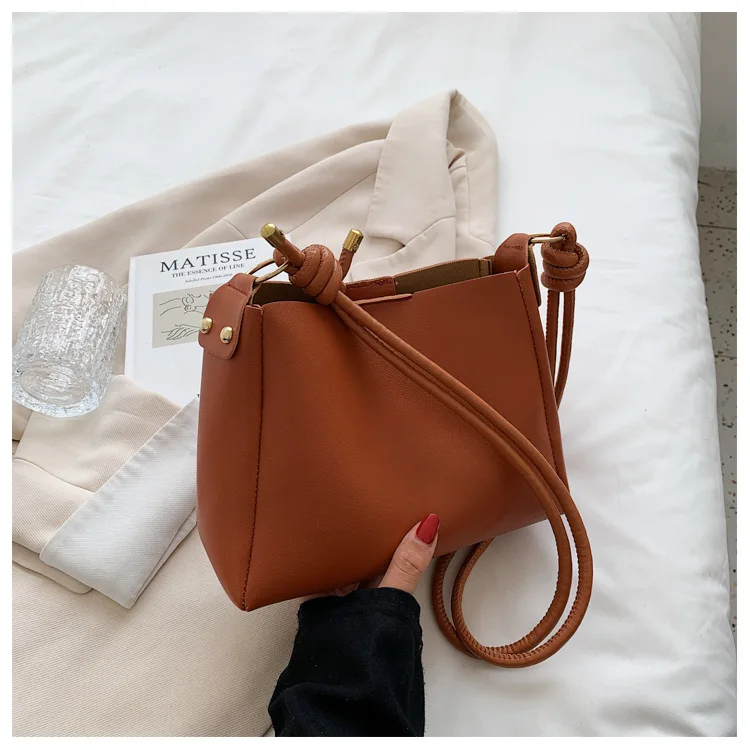 Designer Vintage Popular Ladies Women Crossbody Shoulder Hand Bags Fashion Casual Large Capacity Cowhide Leather Bucket Bag 2026