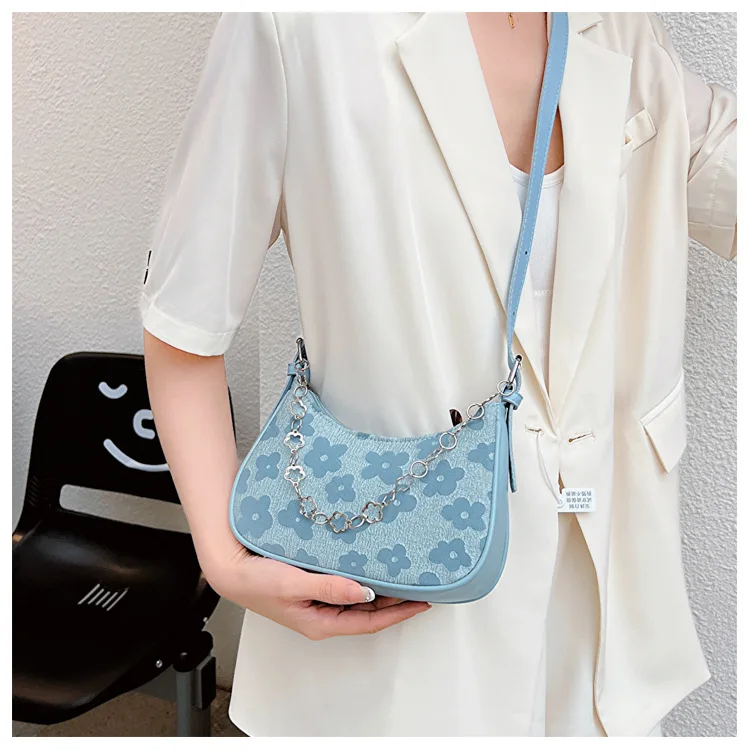 Wholesale Latest Brand Small Designer Handbags Thread Leather Shoulder Bag Women Ladies Chain Denim Print Mobile Phone Bag