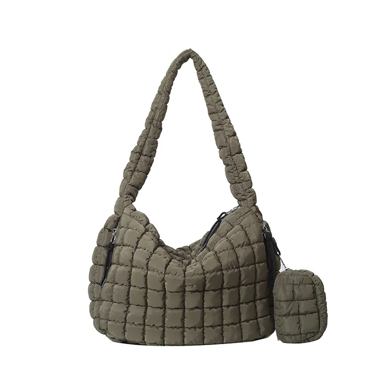 Puffer Tote Bag for Women Initial Tote Bags Quilted Large Carryall Puffy Cross-body Bag Handbags