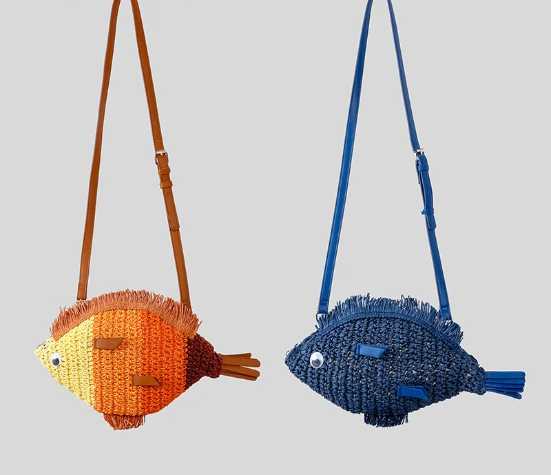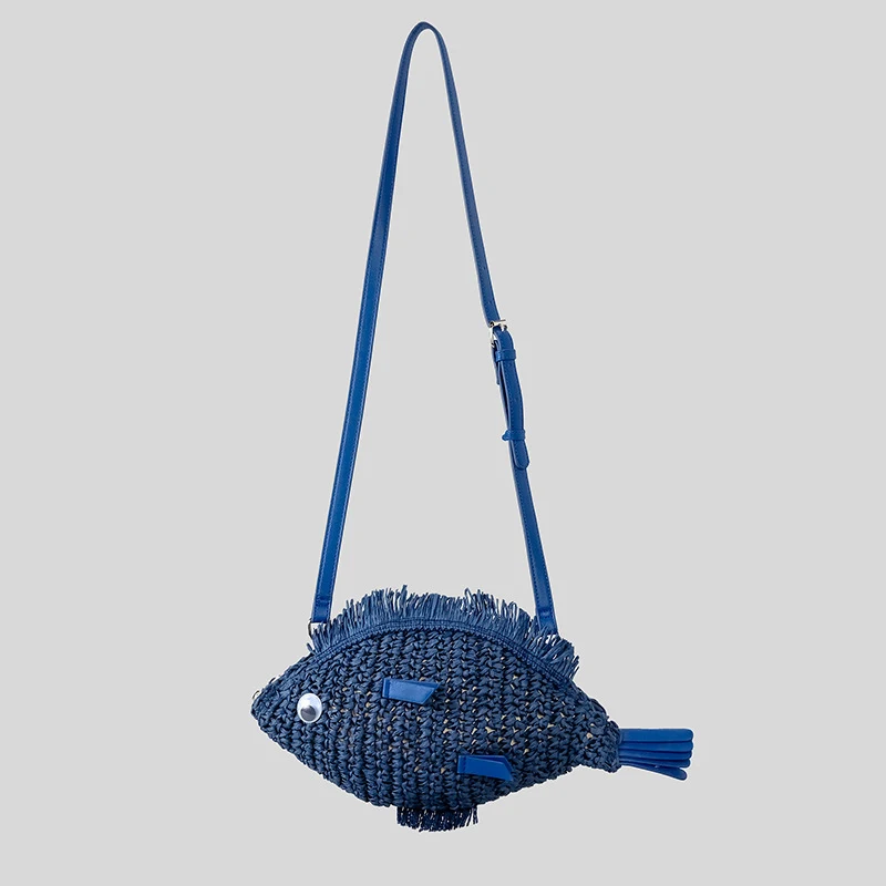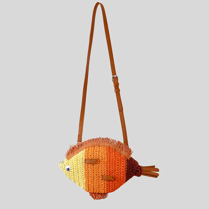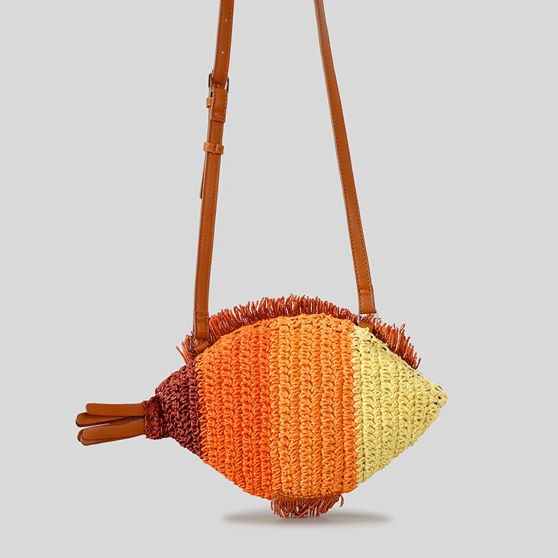 Fashion Woven Crossbody Bag Fish Shape Creative Shoulder Messenger Straw Bag Summer