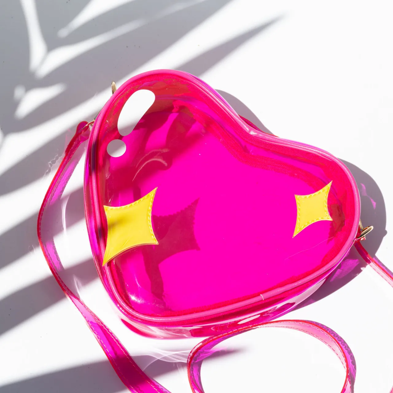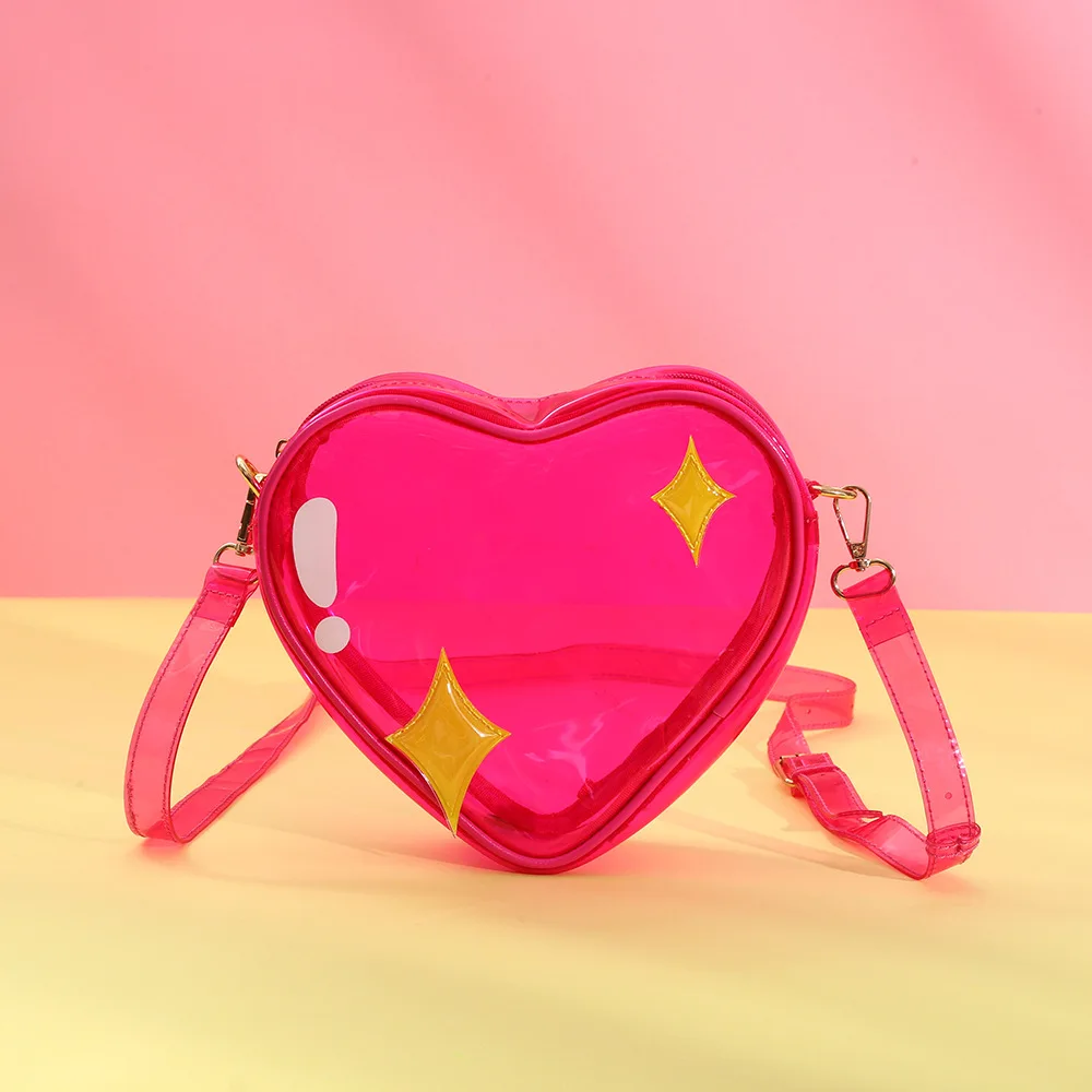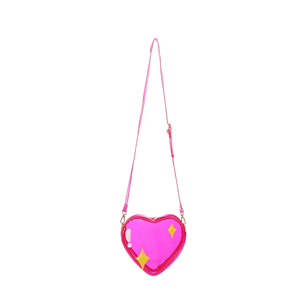 Custom Bag Factory Women Cute Clear PVC Heart Shape Shoulder Bags With Star Appliques for Concert