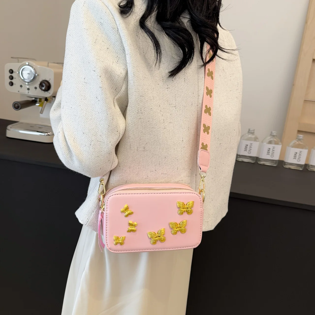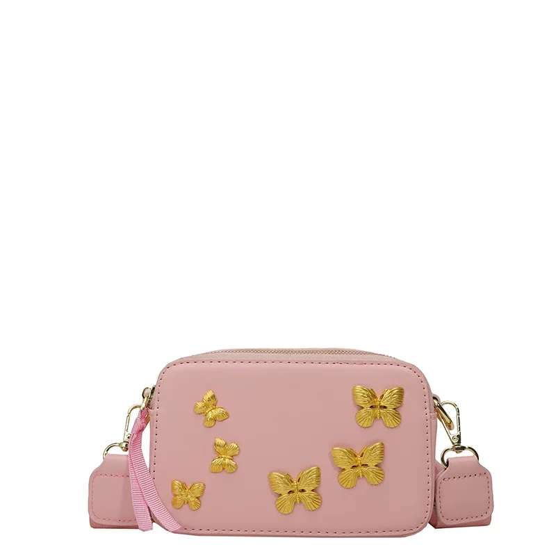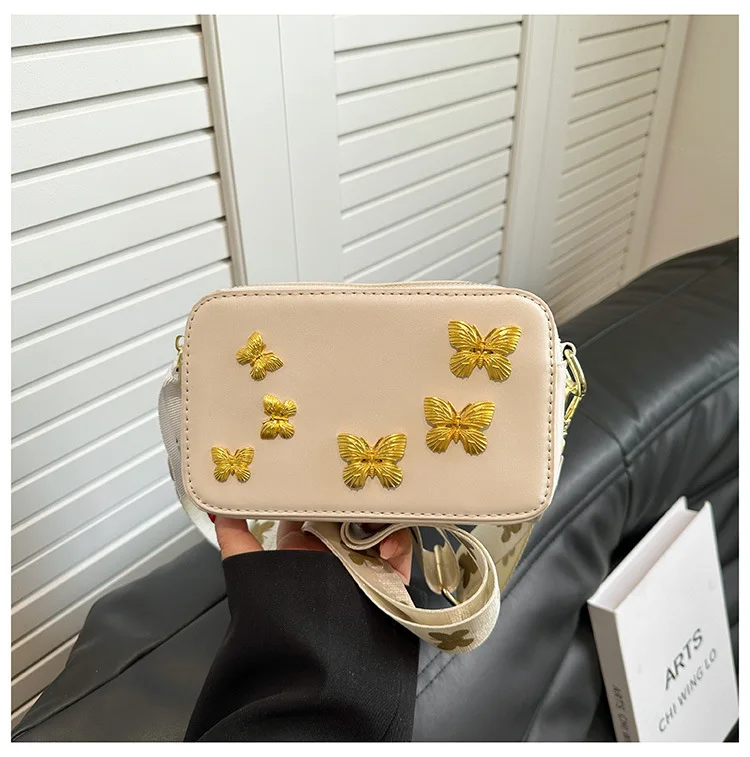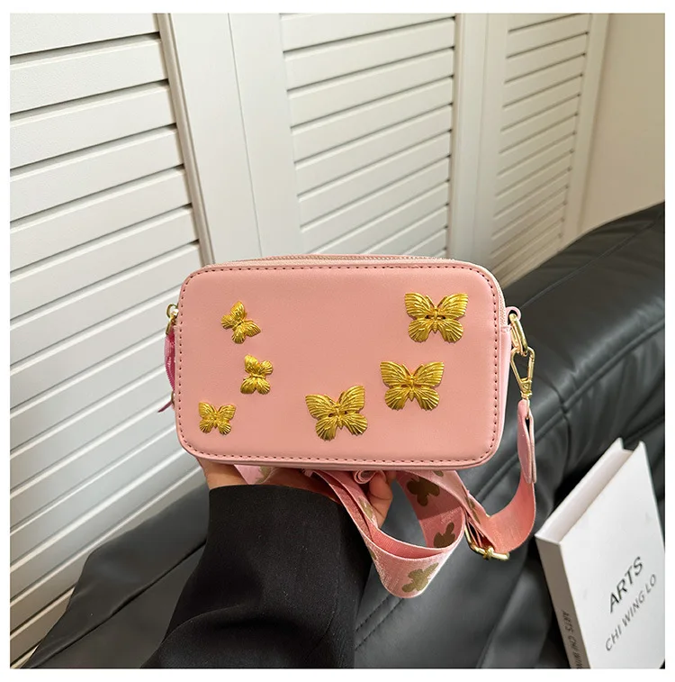 Custom Bag Manufacture Chain Box Bag Metal butterfly Decoration Small square Bag With Webbing Strap