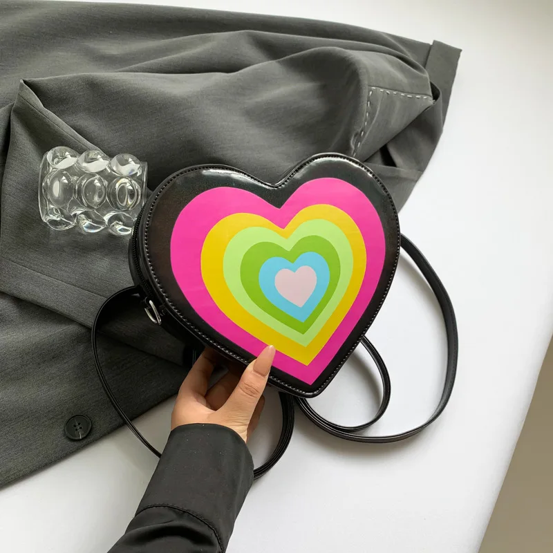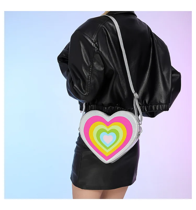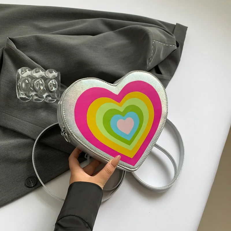 Factory Directly Supplied Custom Mini Heart-Shaped Sling Crossbody Bag Rainbow Color Girl Bag