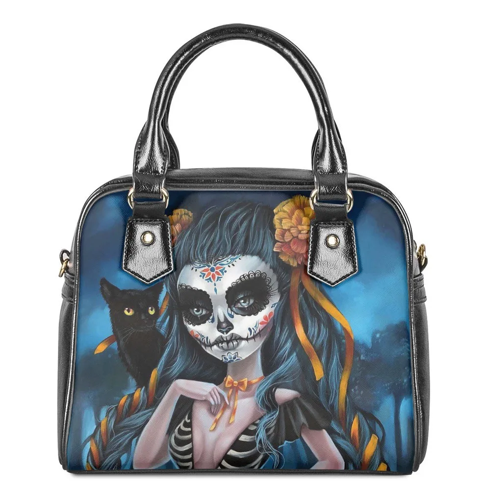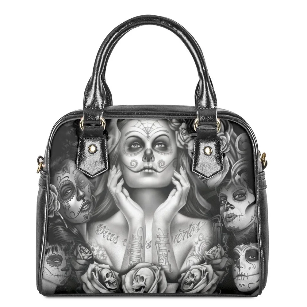 Customize Printing Pattern Vegan Leather Tote Bags Women's Gothic Styled Crossbody Bags