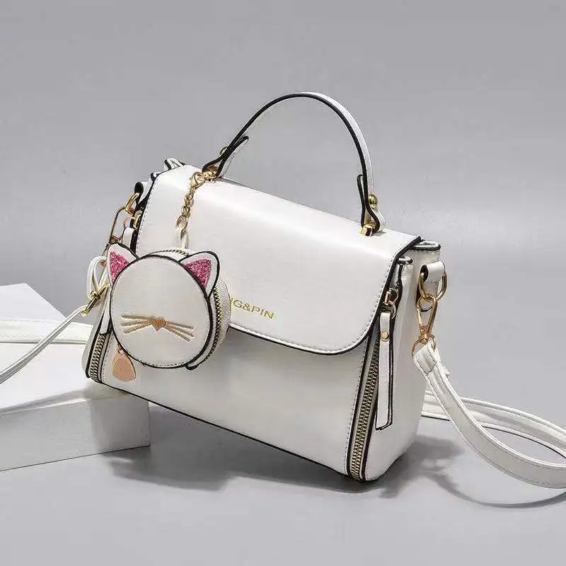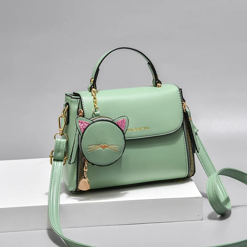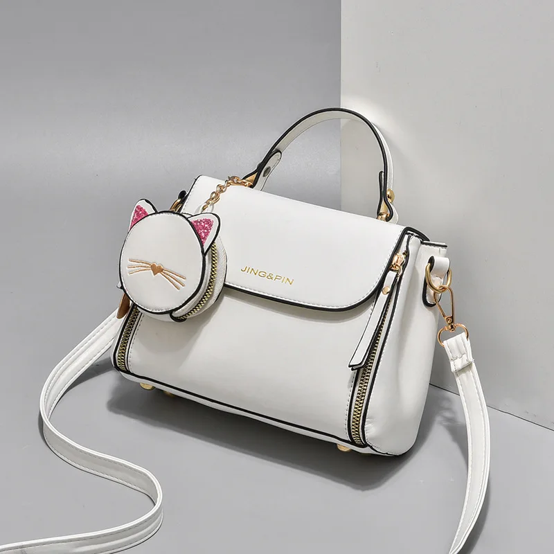 New Fashion Women Ladies Handbag Versatile PU Leather Zipper Women Shoulder Crossbody Bag Cat Solid Colour Bag