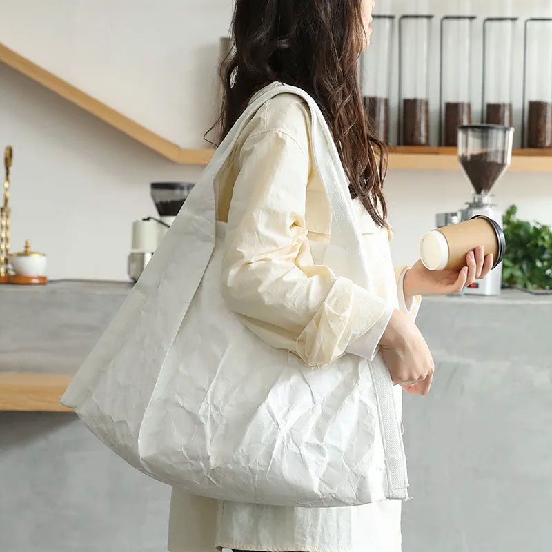 Tyvek Kraft Paper Market Tote Shopping Bag Custom Print Clear Tyvek Bag Waterproof Shopping Carry All Tote Bag for Women
