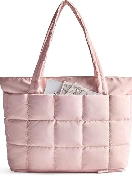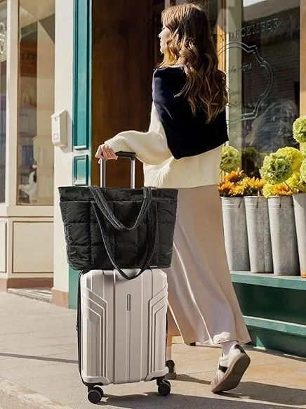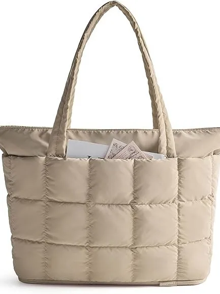 Women's Large Capacity Water-Resistant Quilted Work Expandable Soft Puffer Tote Bag for Travel and Shopping