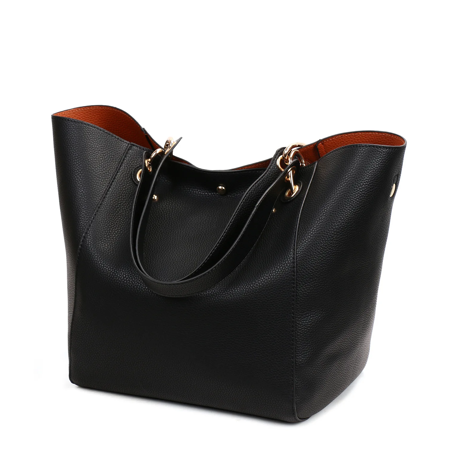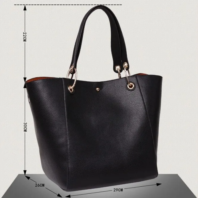 Waterproof Large Capacity Luxury Leather Ladies Tote Bag Women's Black Color Shoulder Tote Bag