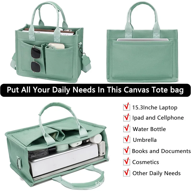 Factory Direct Women's Large Canvas Tote Bag with Zipper Closure Polyester Lining Laptop Crossbody Daily Bag