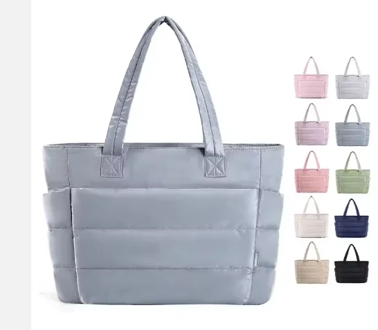 Factory Custom Personalized Nylon Tote Bag Quilted Nylon Soft Puffer Shopper Shoulder Bag
