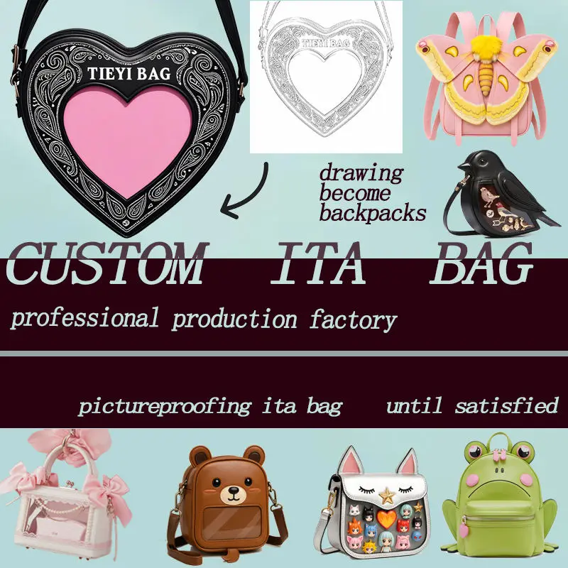 Custom OEM Fashion Design PU Ita Bag with Transparent Window Pin Display Insert