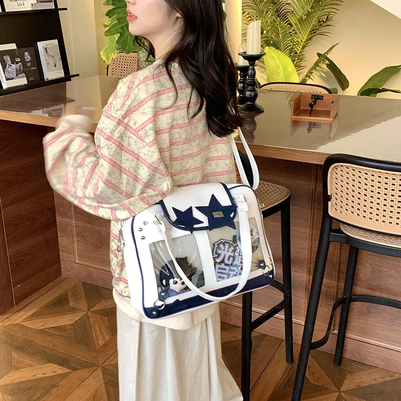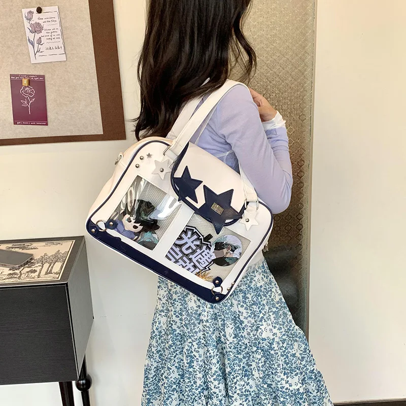 Waterproof Cute Women Girls PU Leather Clear Pin Display School Cosplay Backpack Custom ITA Bag