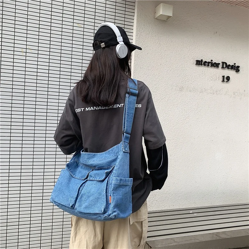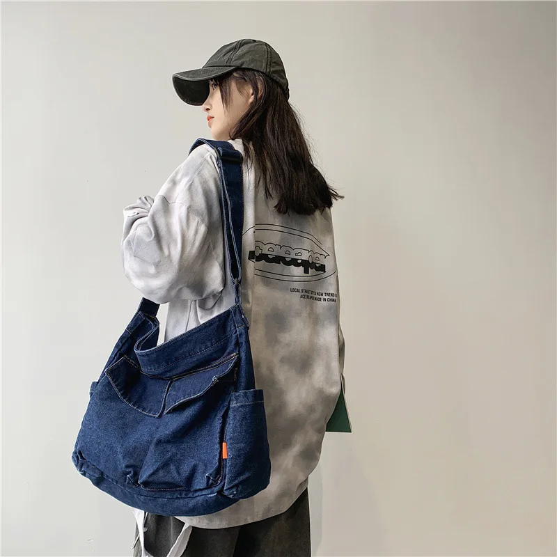 Denim Shoulder Bag Messenger Bag Tote Bag New Unisex Fashionable Vintage Crossbody Bag Large Capacity Denim Shoulder Bag