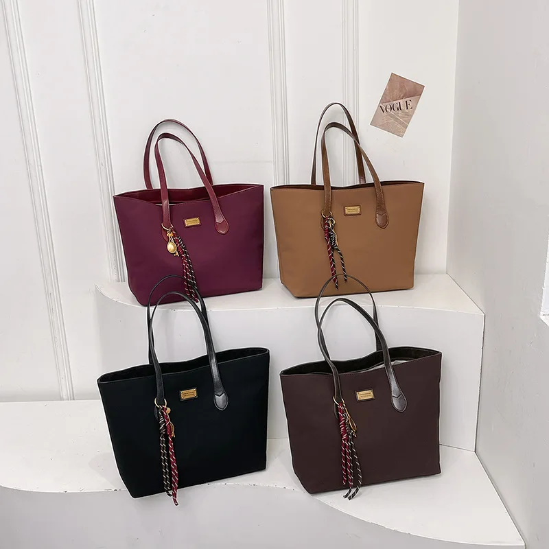 2026 New Vintage Women's Tote Bag Large Capacity Handbag Custom Women Shoulder Nylon Fabric Tote Bag with Zipper