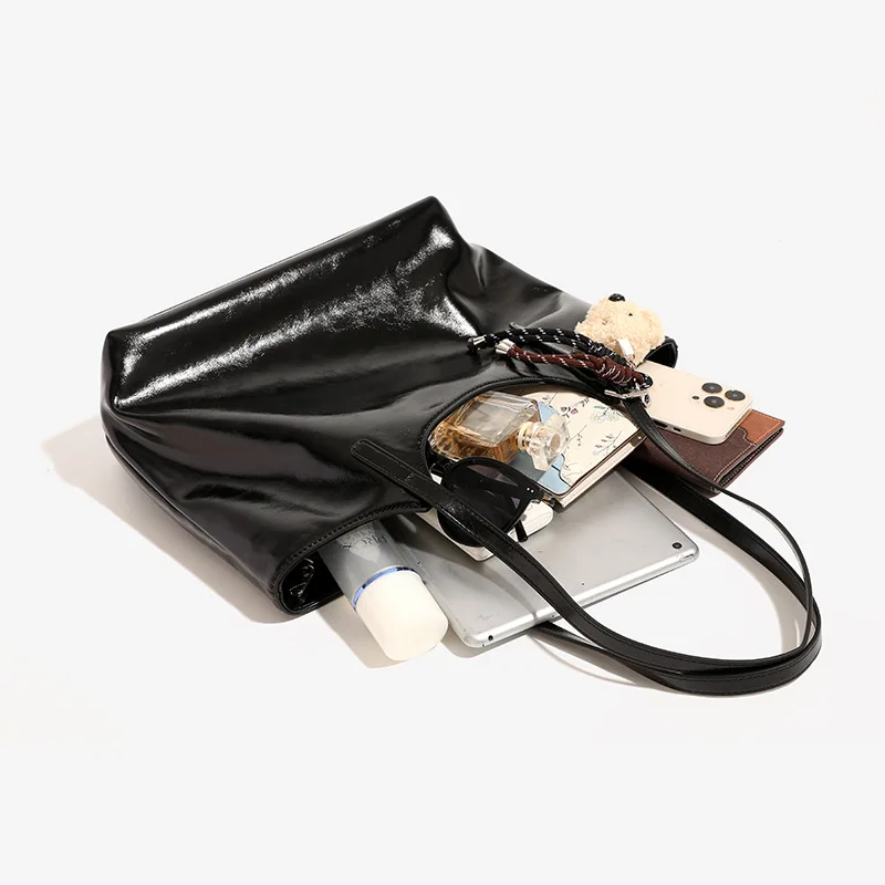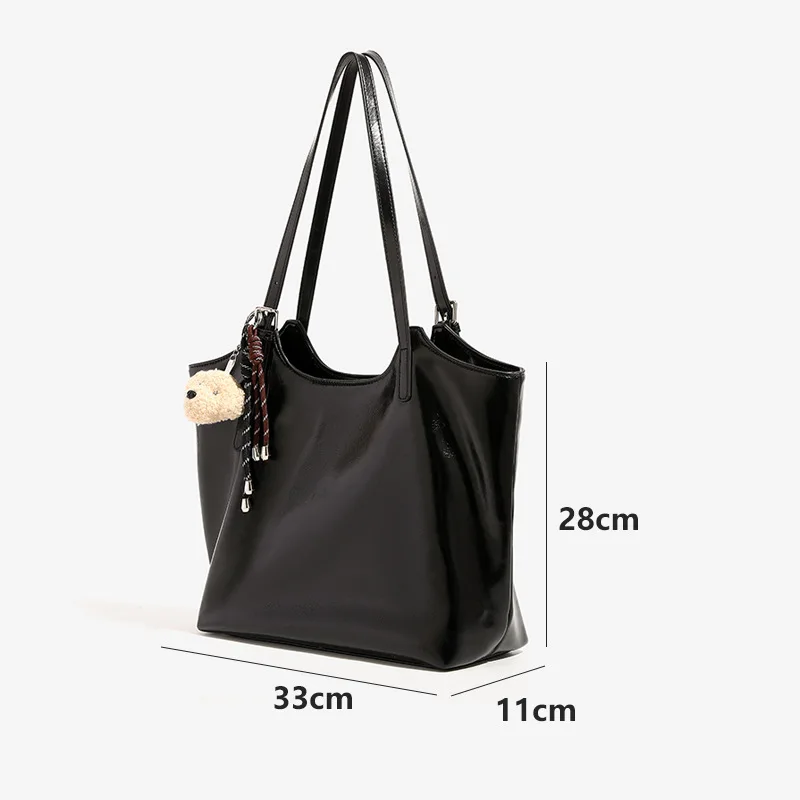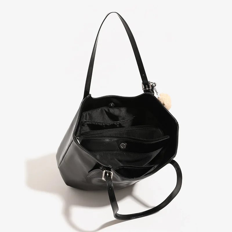 Custom Women Large Capacity Black Pu Shoulder Bag Fashion Luxury PU Tote Bag Simple Elegant Handbag for Daily Matching