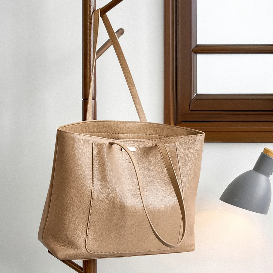 Custom New Design Ladies Genuine Leather Large Capacity Tote Bag Cowhide Leather Luxury Single Shoulder Handbag