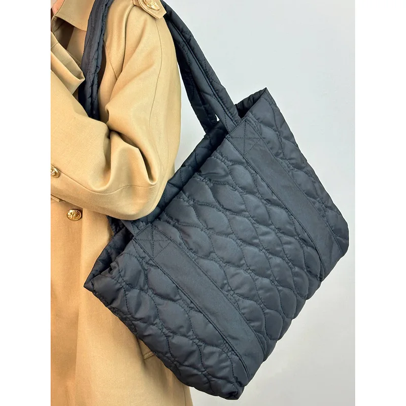 Custom Women Large Quilted Puffer Shoulder Bag Puffy Oversized Puffer Tote Bag