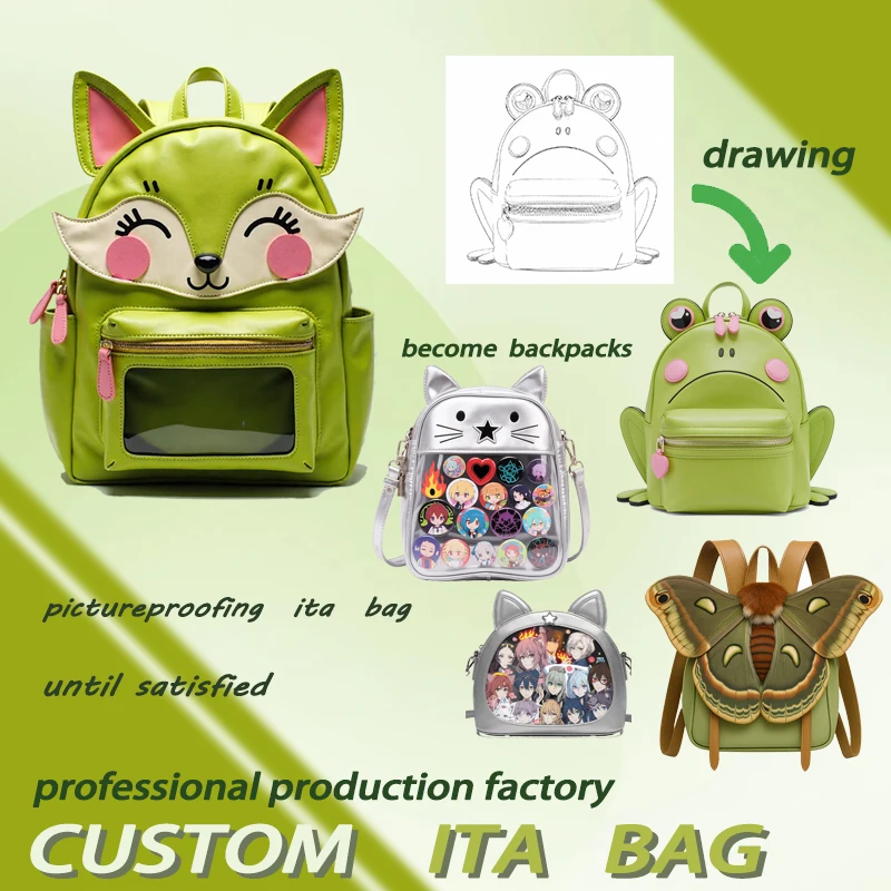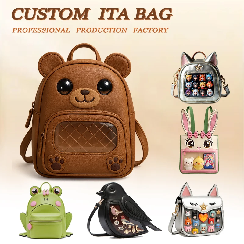 Customize New Designed Cute Animal Shaped Ita Bag with Transparent Window Brooch Display Panel Ita Bag Manufacture