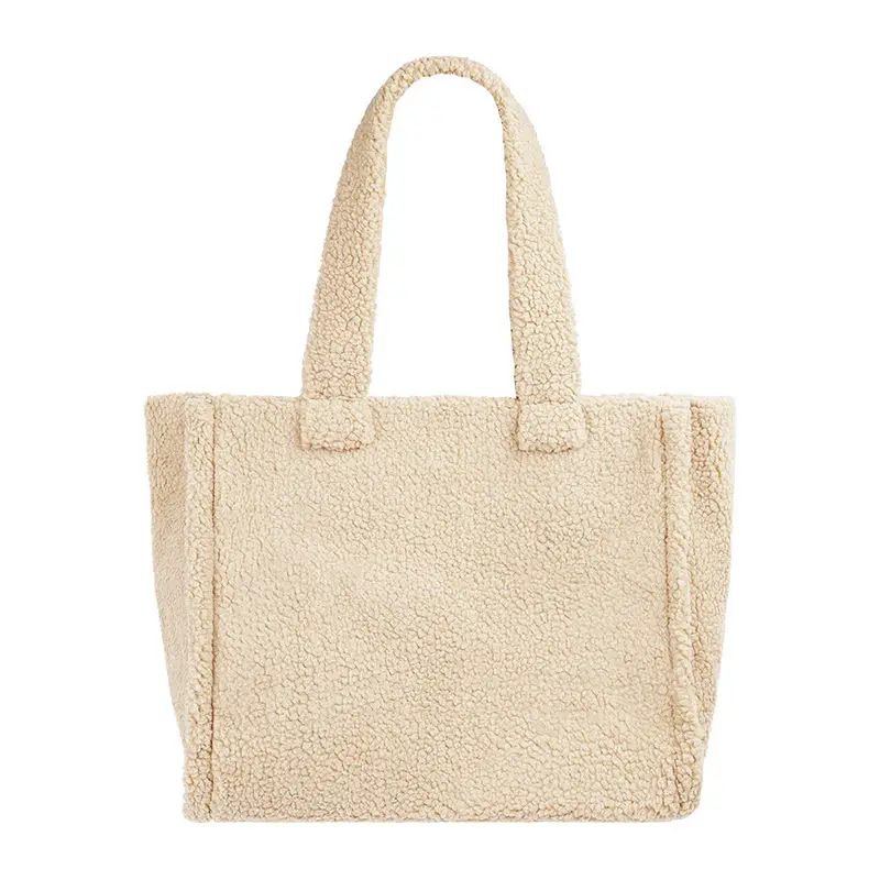 Large Women Custom Eco Plush Faux Fur Shoulder Crossbody Handbag Soft Plush Furry Fleece Handbag Ladies Sherpa Tote Bag
