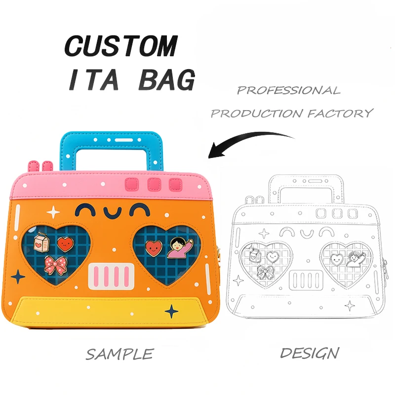Wholesale Manufacturer Custom Pu Leather Ita Bag Anime Cute Radio Shape Ita Bag With Clear Window Transparent Hand Bag