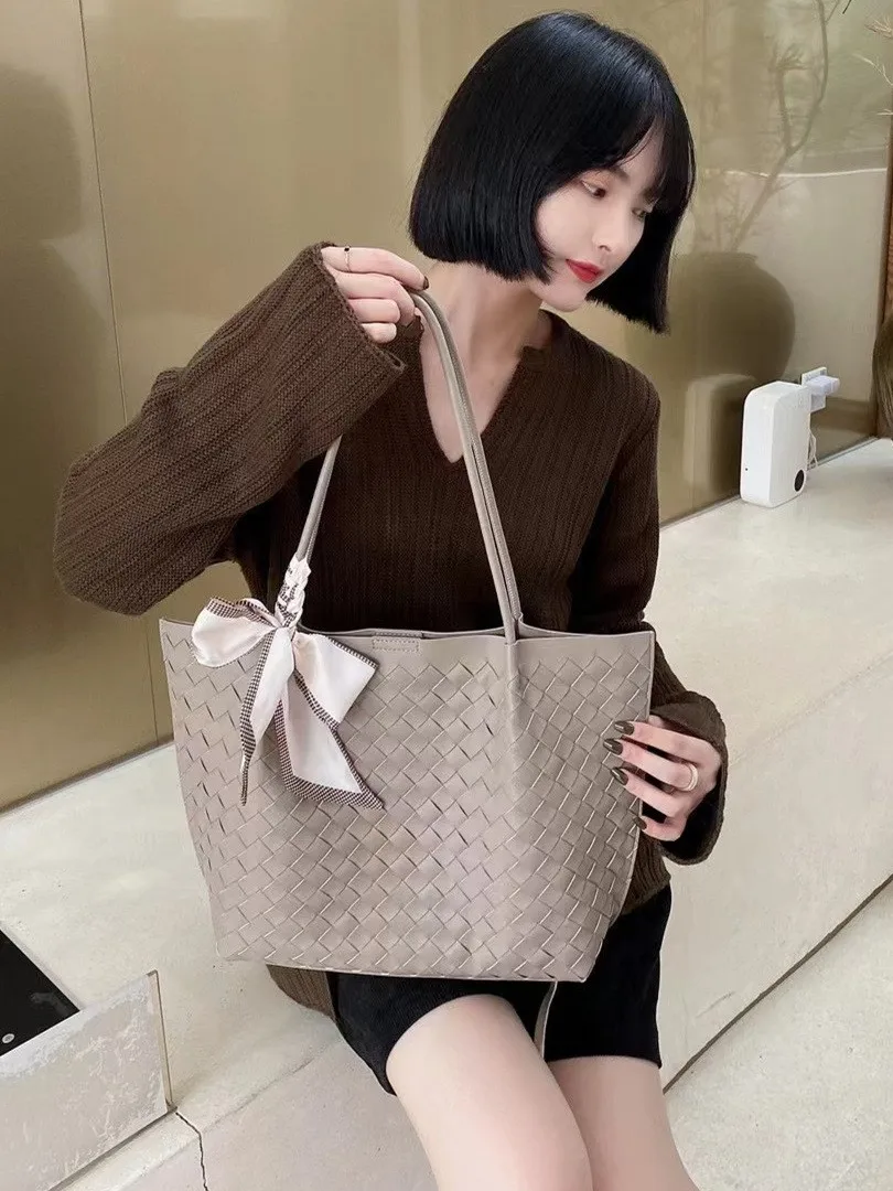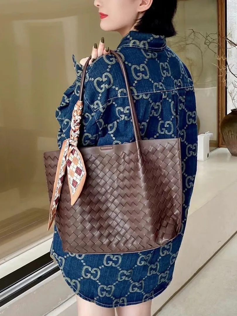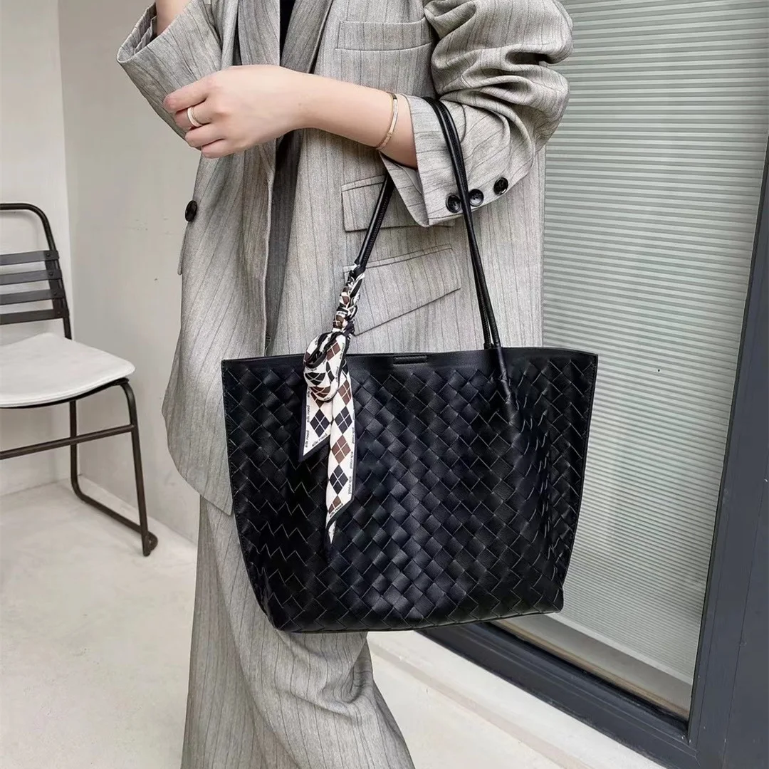 Custom Fashion Women's Tote Bag Casual Fashion Soft Cowhide Woven Women's Handbag Large Capacity Ladies Bag