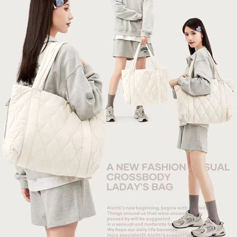 Custom Lightweight Soft Sling Shoulder Nylon Quilted Puffy Tote Bag Soft Sling Shoulder Oversized Puffer Bag for Women