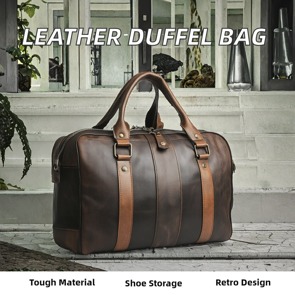 Custom Genuine Leather Men Travel Bag Sports Gym Bag Large-Capacity Weekend Overnight Luggage Travel Duffle Bag for Men