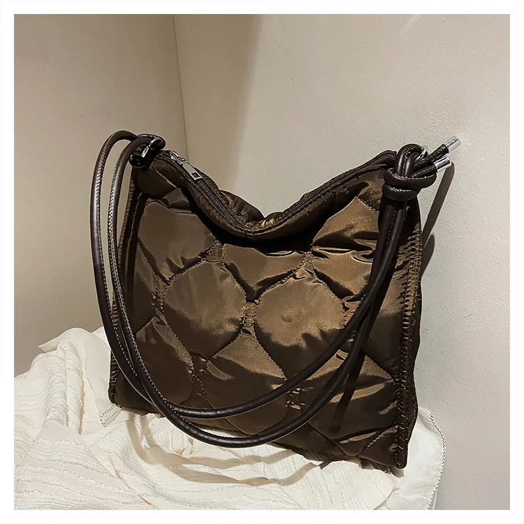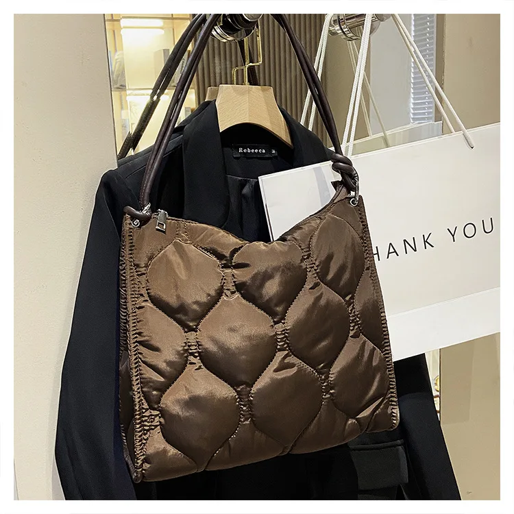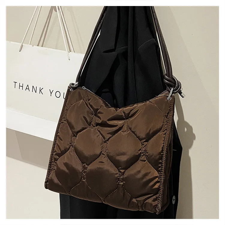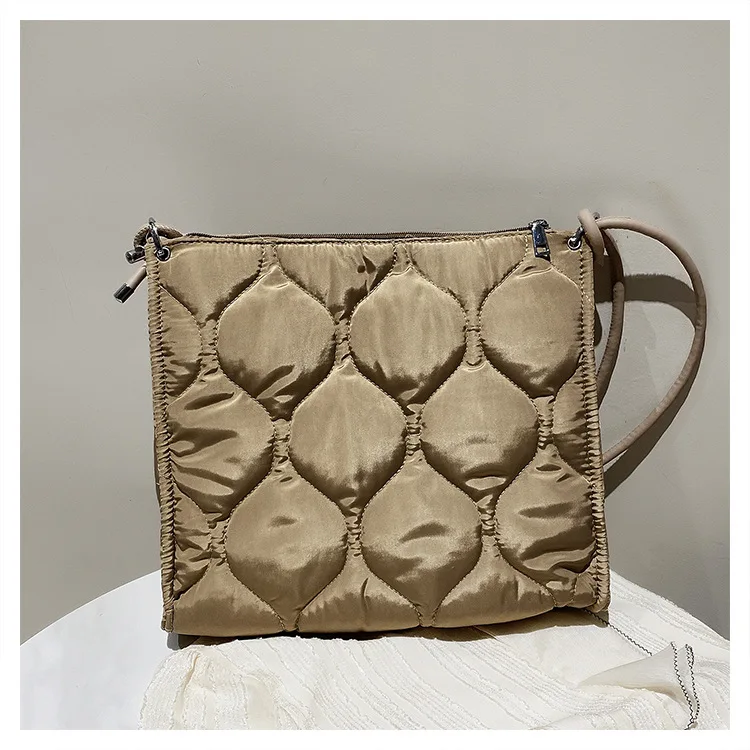 Custom Waterproof Washing Nylon Quilted Ladies Handbags Shoulder Tote Hand Bag Soft Padded Puffy Oversize Woman's Shoulder Bag