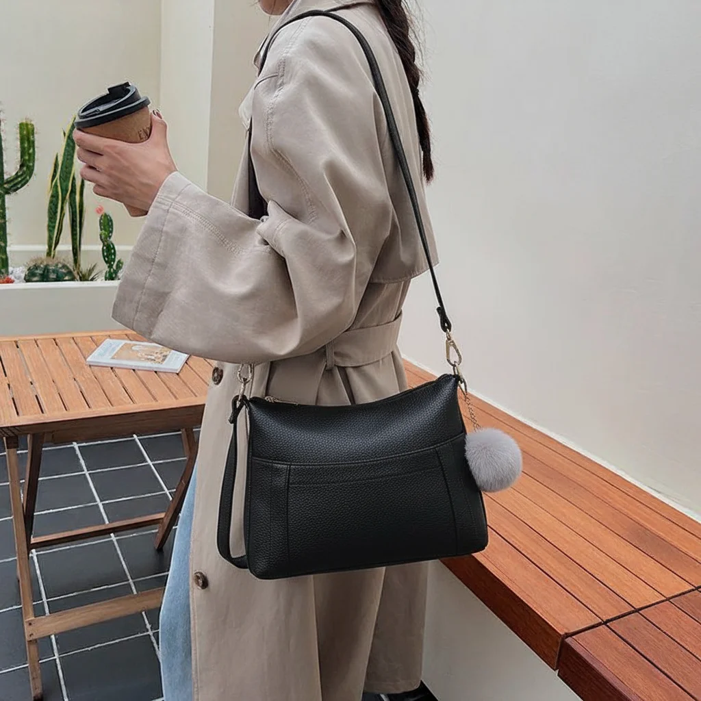 2026 New Custom Fashion High Capacity Women's Bag PU Leather Handbag Multi Layer Soft Leather One Shoulder Crossbody Bag