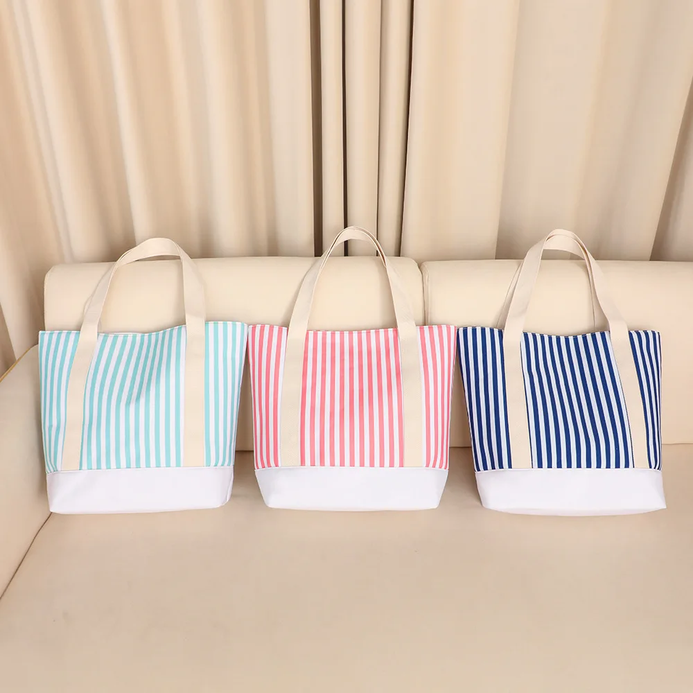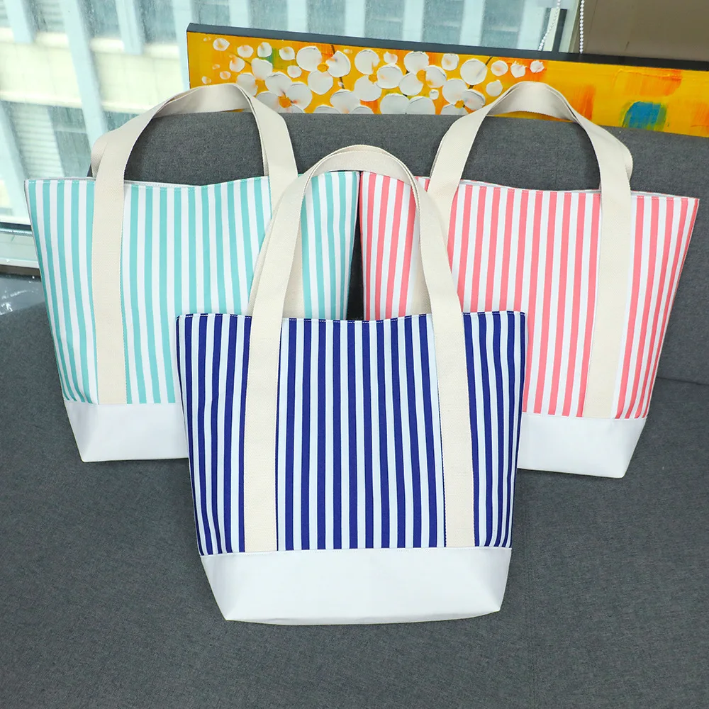 Custom Overnight Bag Wholesale Personalized Stripe Teacher Bag Women Canvas Shoulder Bag Factory Sale Canvas Striped Tote Bag
