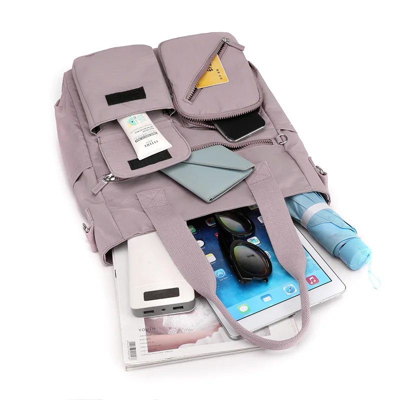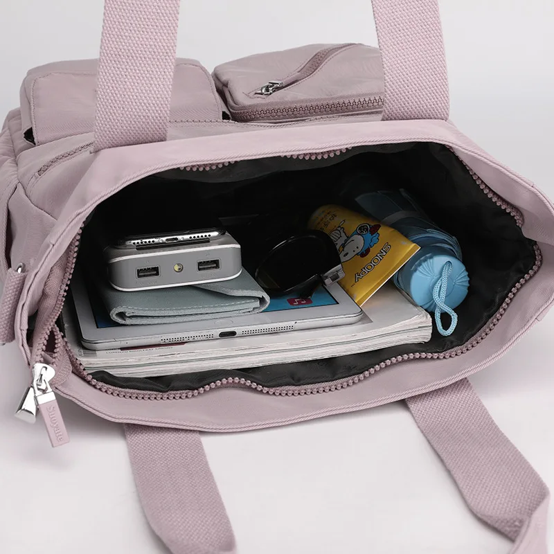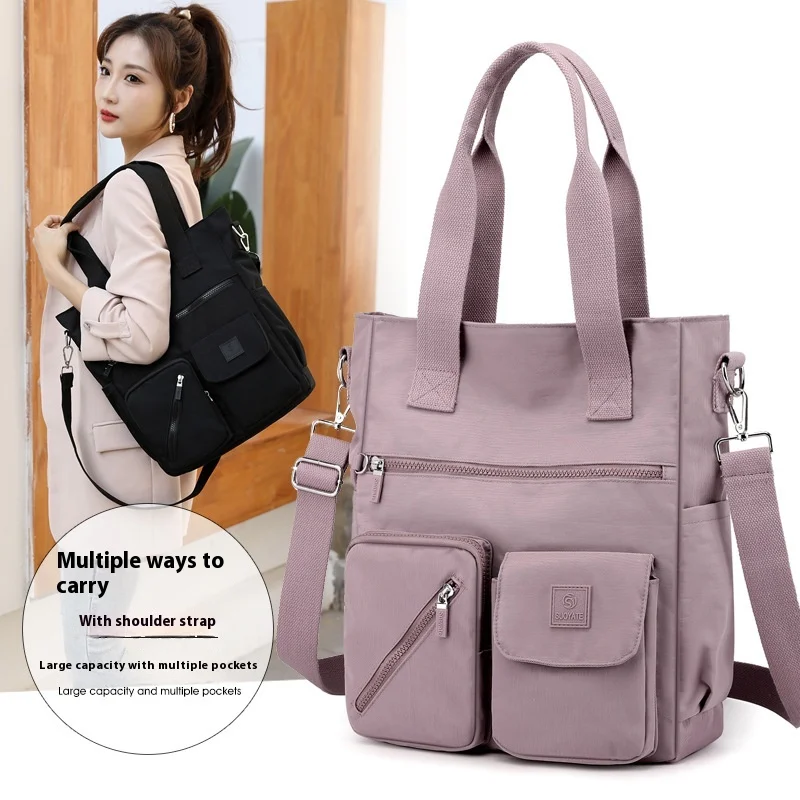 Custom Nylon Shoulder Bag Crossbody Handbag Fashionable Casual Portable Women's Blank Tote Bag with Pocket
