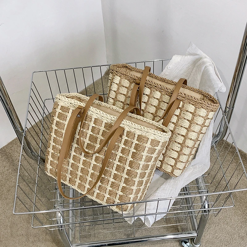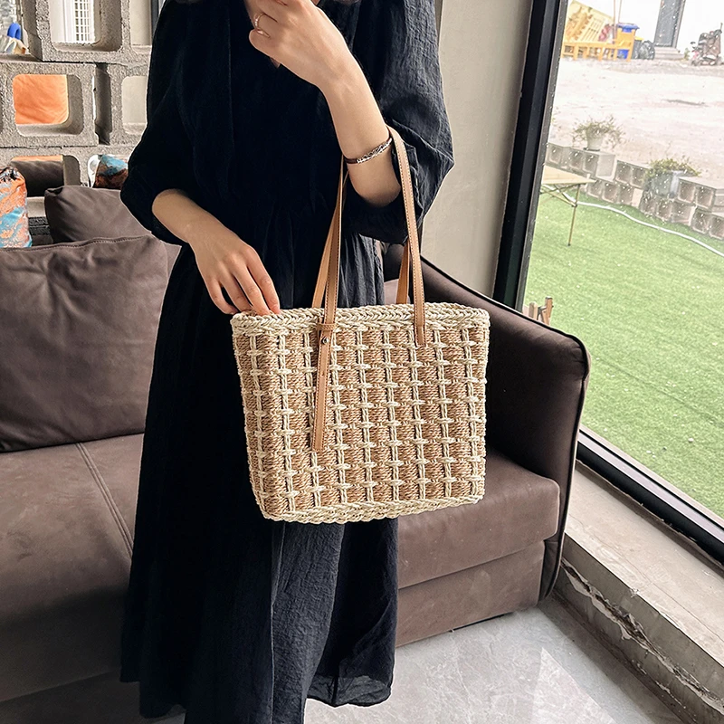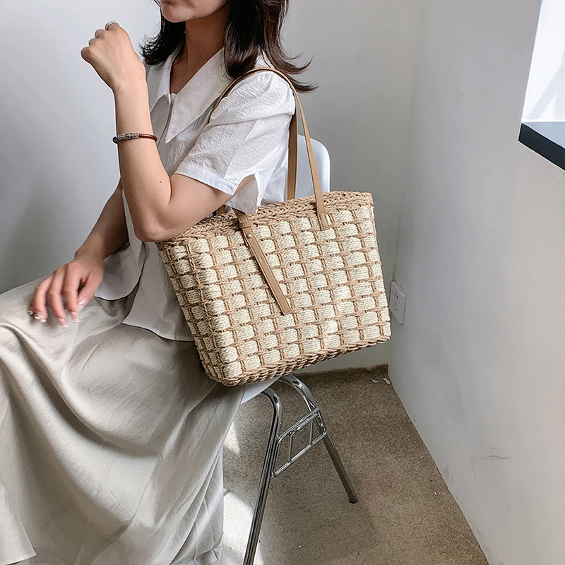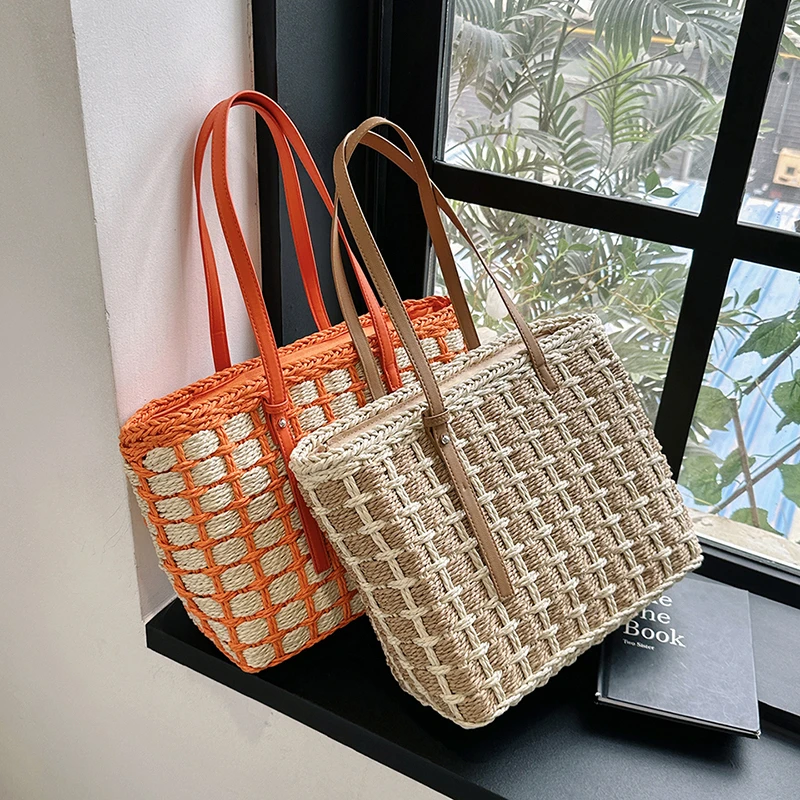 Wholesale Large Capacity Summer Women'S Tote Bags Fashion Causal Woven Straw Handbag Support Customization