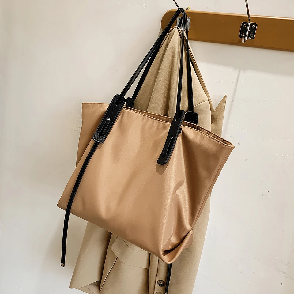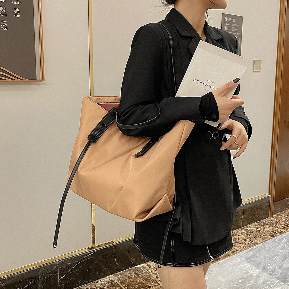 Wholesale Best Quality Nylon Fabric Woman Shoulder Bags High Capacity Fashion Solid Color Shopping Tote Bag