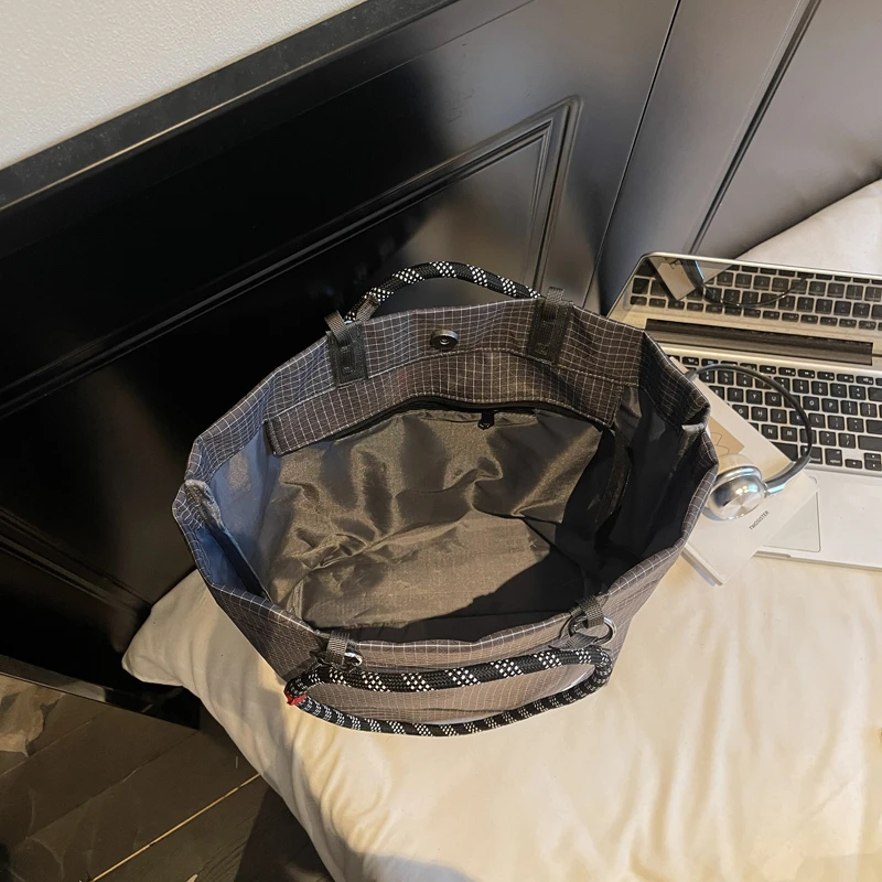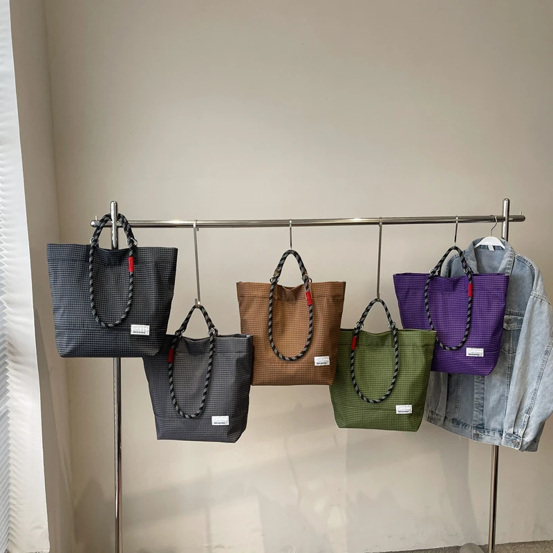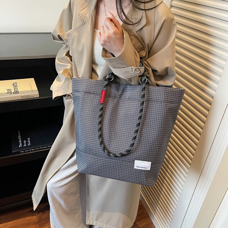 Custom Simple Large Capacity Canvas Tote Bag Fashion Plaid Design Portable Shoulder Bag Durable College Handbag for Women