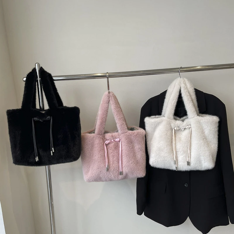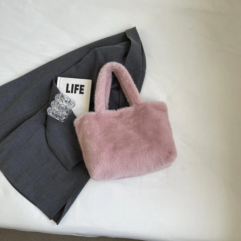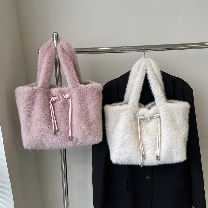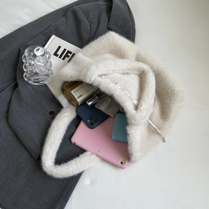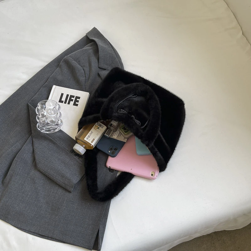 Factory Wholesale Lady Fur Tote Bags Fashion Elegant Soft Fuzzy Women'S Shoulder Bag Handbag Casual Plush Bags