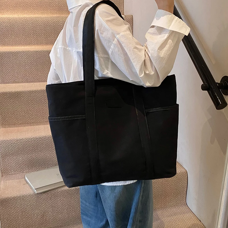 Custom Size Simple Solid Color Tote Bag Simple Fashion Canvas Tote Bag Canvas Shoulder Bag Plain Custom Canvas Shopping Bag
