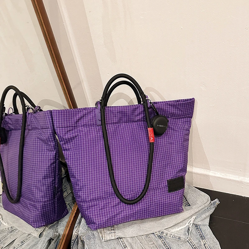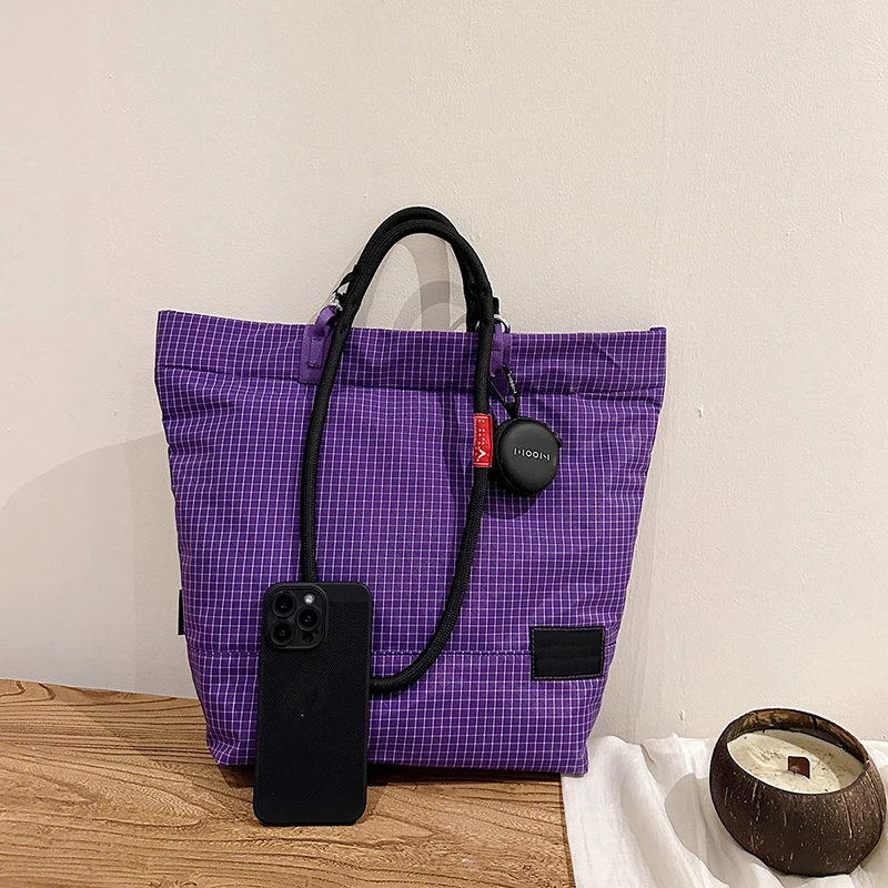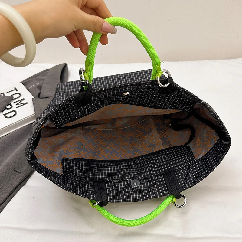 Custom Plaid Design Simple Leisure Travel Commuting Large Oxford Cloth Tote Bag Durable Portable Shoulder Bag for Women