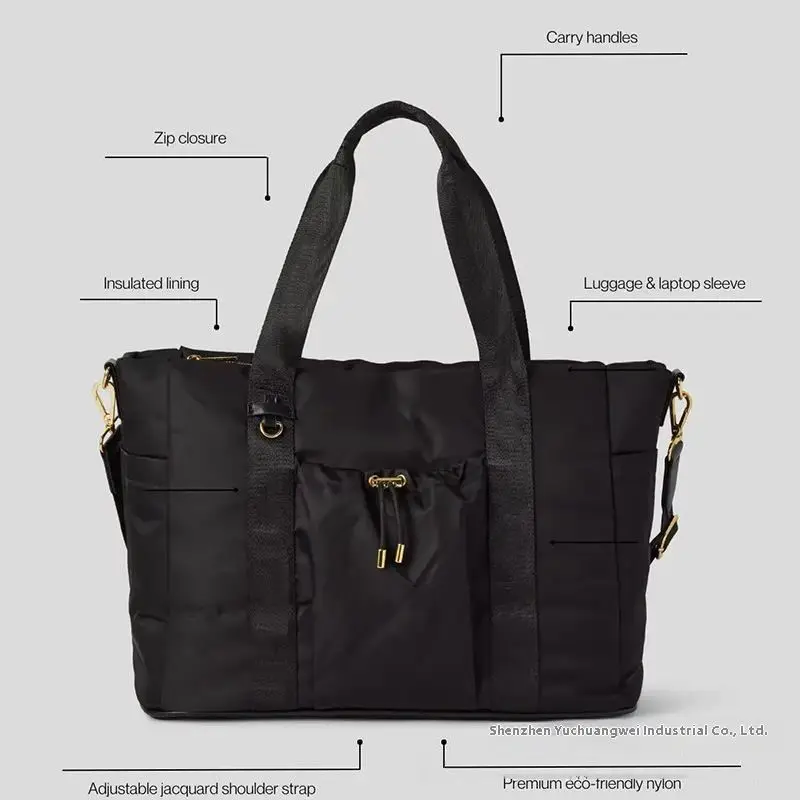 High Quality Large Women's Weekend Travel Duffel Tote Bag Fashionable Nylon Wet Pocket Toiletry Gym Yoga Sports Bag Zipper