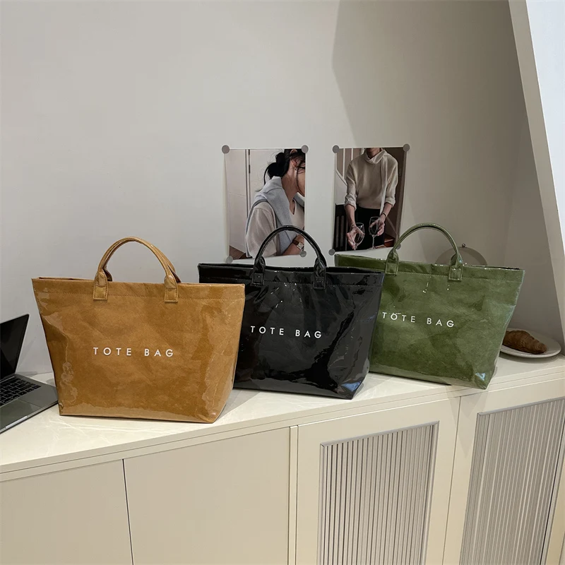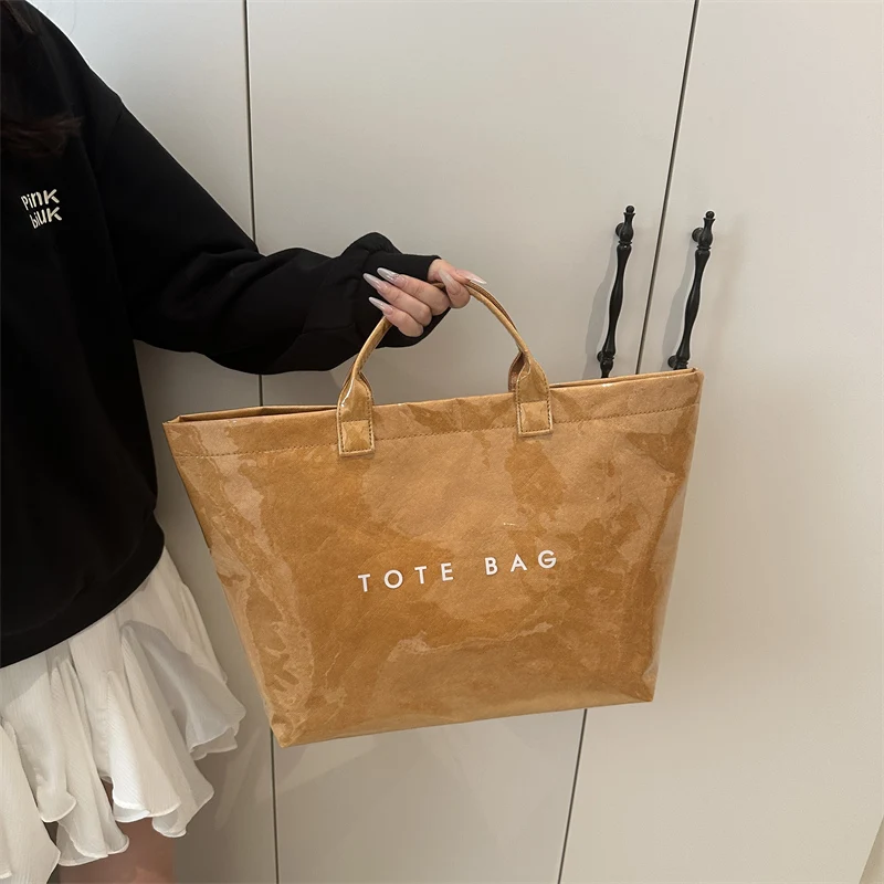 Custom Design Logo TYVEK Dupont Kraft Paper Thick Lined Foldable Shopping Bag Heavy Duty Eco Grocery TPU PVC Tote Bag