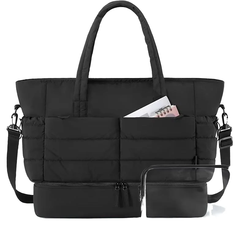 Custom 2026 New Travel Duffel Bag Ladies Lightweight Polyester Puffy Tote Fashionable Fitness Handbag with Shoe Compartment