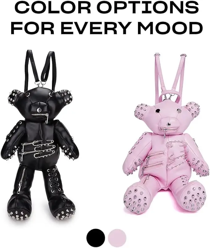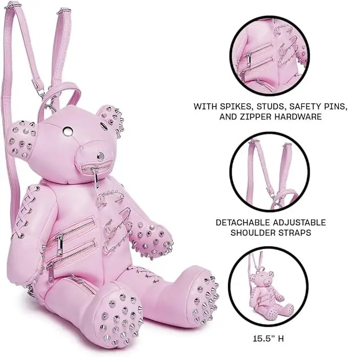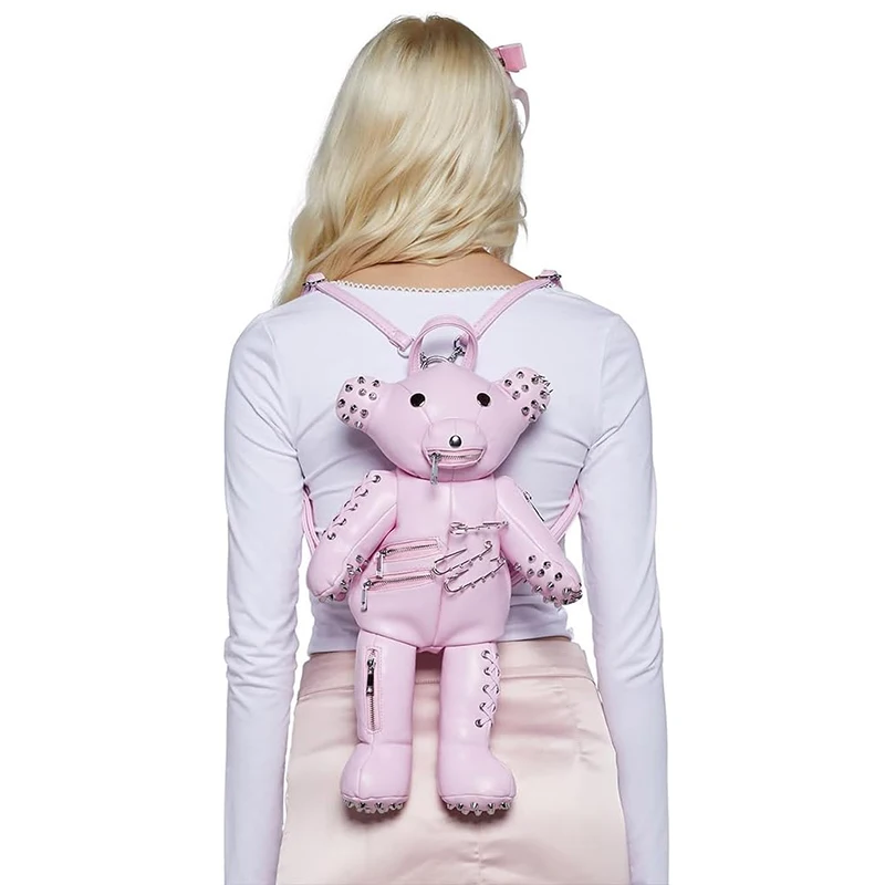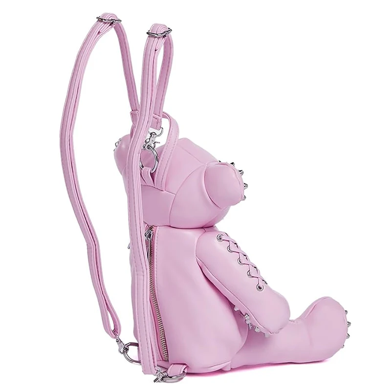 Custom Gothic Womens Adorable Teddy Shaped Pumpkin Stuffed PU Leather Pink Bear Backpack