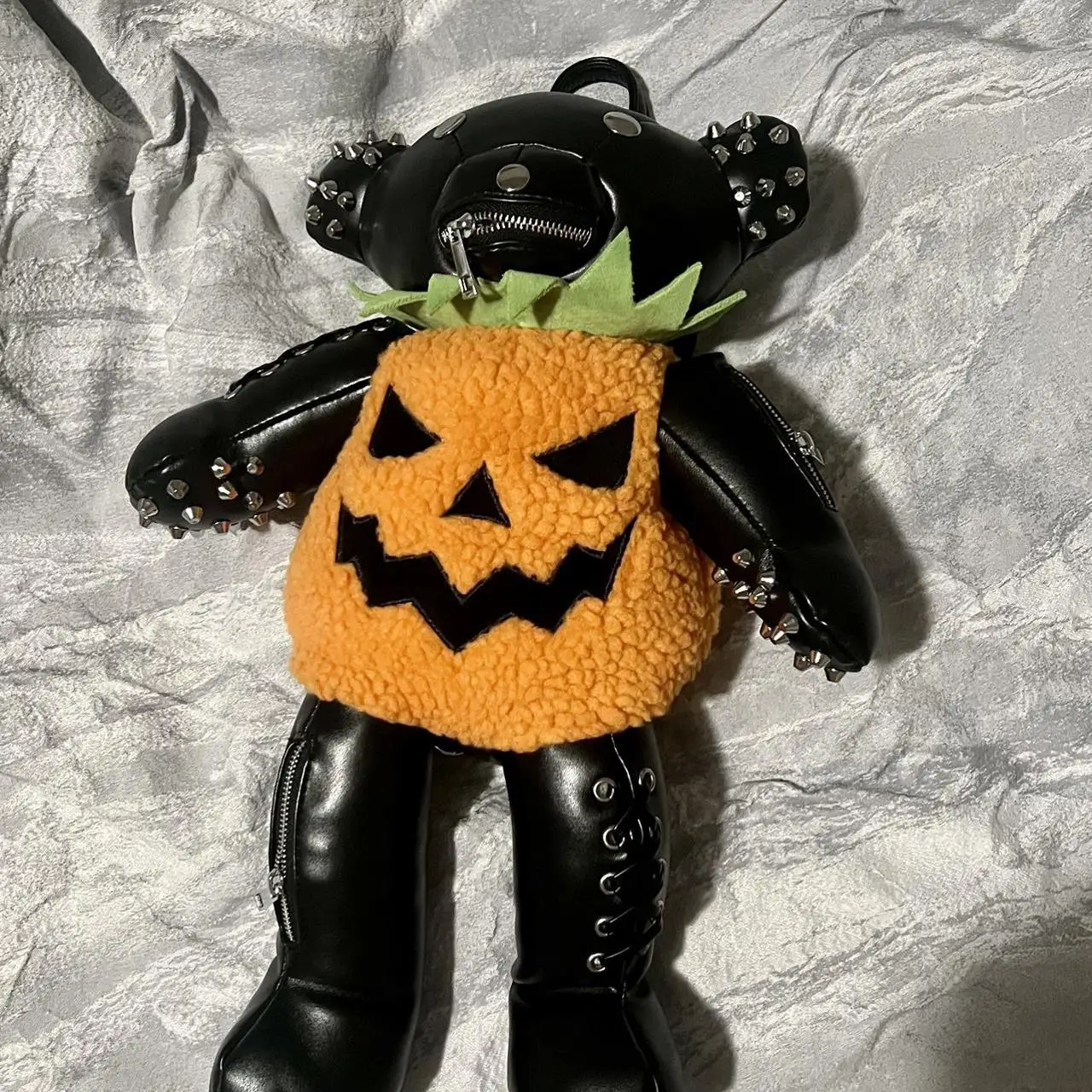 Hot Sale Punk Designer Cartoon Teddy Backpack Cute Goth Halloween Pumpkin Bear Doll Backpack for Adults Women Lady