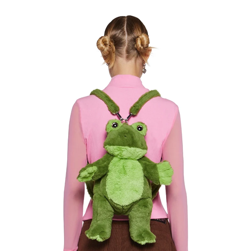 Custom Super Soft Bear Backpack Cute Plush Doll Winter Furry Small Animal Frog Shape Plush Backpack for Girl